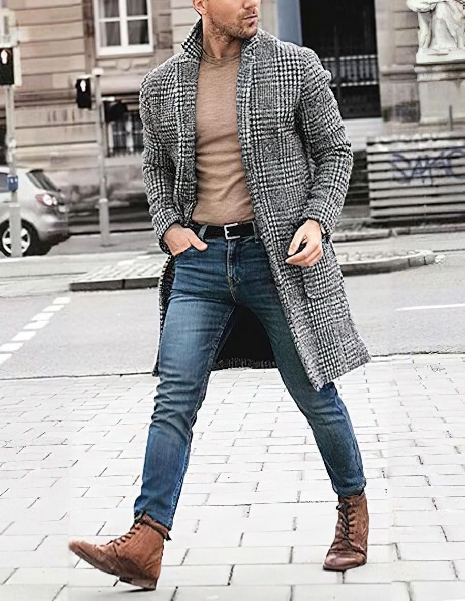 - Fashion mens plaid wool coat overcoat western, featuring vintage plaid printed pattern, with pockets for convenience, basic and simple to wear for work and casual.