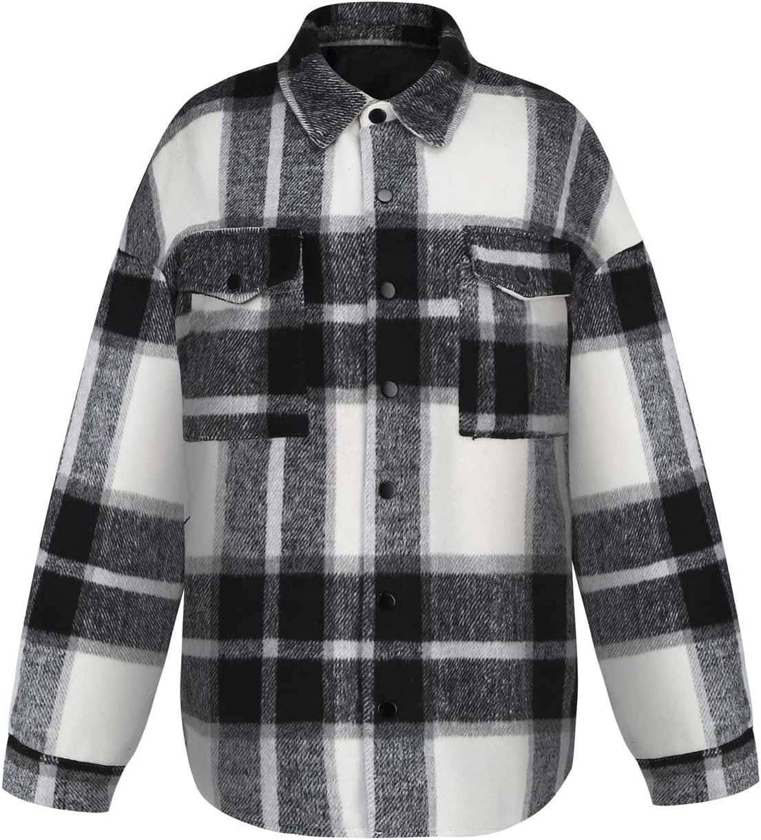 Men’s Casual Warm Plaid Wool Blend Jacket Fleece Relaxed Fit Button Up Long Sleeve Shacket Shirt Coat