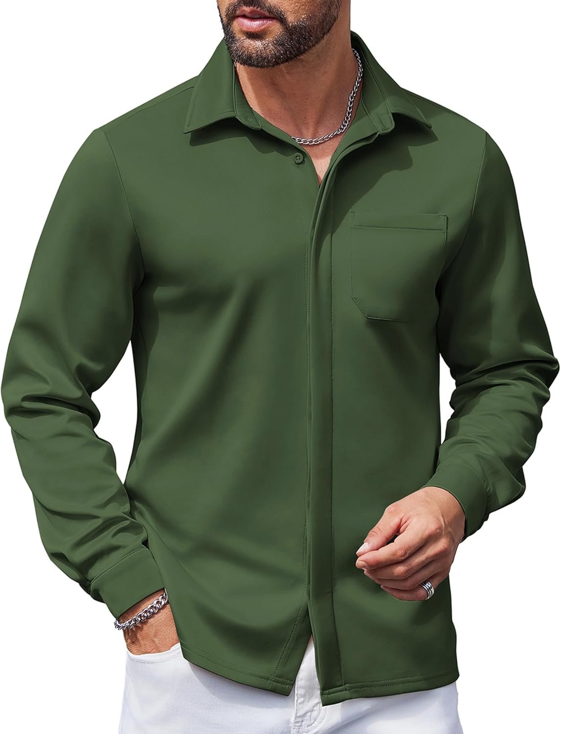• 【Daily & Fashion】Untucked shirts for men comes with invisible button down closure, long sleeve, button cuff, stylish. Casual style or dress shirt is up to you. All style never goes wrong.