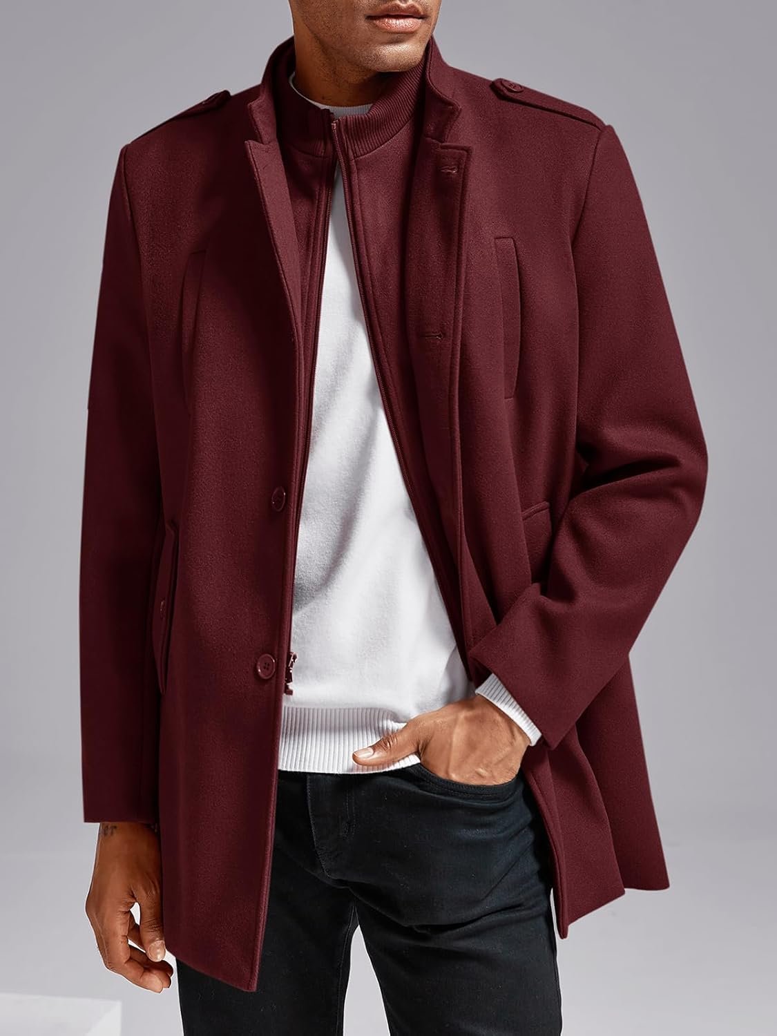 - Match: This overcoat for men can pair with stylish denim pants, chinos, vests, scarf, shirts, leather shoes, sweaters and any other style of outfit. The polyester lining to enhances the wind resistant and warm effect, wearing it to keep warm in heavy winter.